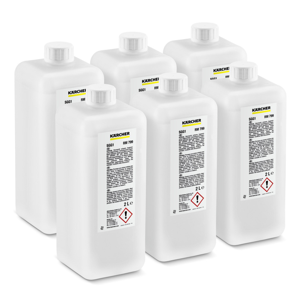Détergent RM 799 pour l'élimination des résidus de chewing-gum. Adapté au décapeur de chewing-gums SGG 1. Contenu : 6 bouteilles de 2 litres.