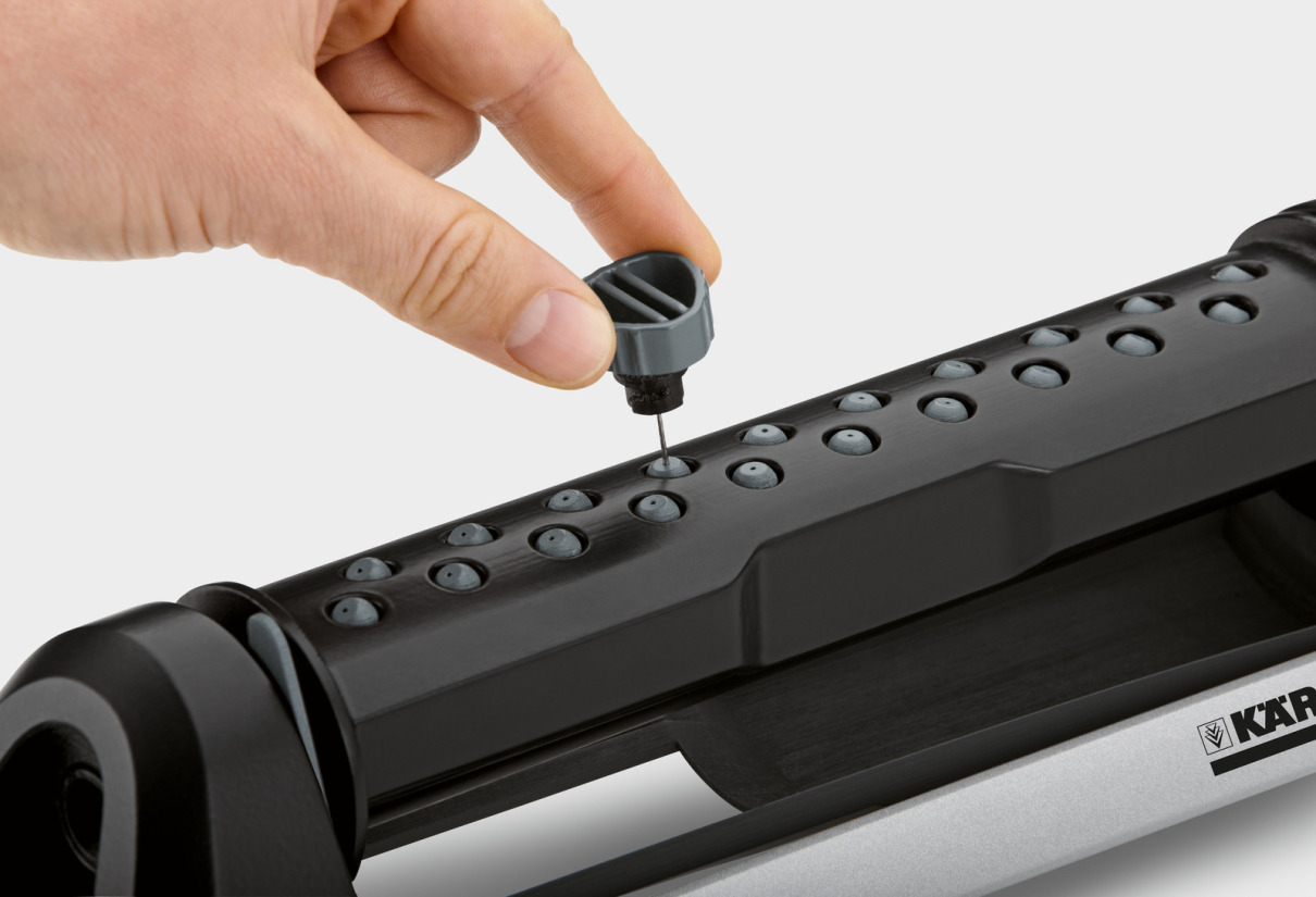 EXCLUSIVITÉ KÄRCHER : Protection contre les éclaboussures : plaque rétractable permettant de conserver une zone sèche, idéale pour mettre en place l’arroseur et le régler sans se mouiller - gain de temps et économies d’eau ! - Outil de nettoyage des buses intégré : pour prolonger sa durée de vie et garantir son efficacité - Rangement facile : ne prend pas de place - Portée du jet réglable : pour s’adapter à différents profils de jardin et arroser au bon endroit - Réglage du débit : pour une utilisation plus facile et très précise (réglage 0 – débit max) - Buses silicone : très résistantes et faciles à nettoyer - Pics de fixation en métal : pour encrer l’arroseur au sol, plus facile à installer et à utiliser grâce à sa grande stabilité
