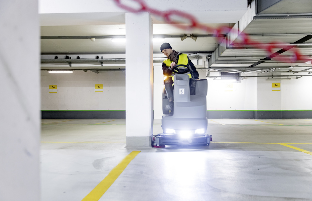 Notre autolaveuse aspirante autoportée B 150 R s'illustre au quotidien par son équipement de série hors pair. Ainsi, le système de dosage de détergent DOSE, le dosage de l'eau en fonction de la vitesse et le mode eco!efficiency aident à préserver les ressources tout en permettant un nettoyage économique. La fonction Auto-Fill fait gagner du temps lors du remplissage du réservoir d'eau propre de 150 litres tandis que le système de rinçage automatique du réservoir facilite le nettoyage du réservoir d'eau sale. Avec 2 brosses-disques, 90 centimètres de largeur de travail et le nouveau suceur d'aspiration très robuste en aluminium moulé sous pression, l'appareil nettoie 7 200 m²/h avec 8 km/h de vitesse de déplacement. Des feux de circulation diurne améliorent la visibilité et un pare-chocs robuste en acier offre une protection fiable de l'utilisateur et de la machine. En outre, la B 150 R est très facile d'utilisation grâce au grand afficheur couleur en 30 langues et aux éléments de commande à code couleurs. L'appareil dispose du système à clé KIK breveté, permettant différents droits d'utilisateur et excluant ainsi pratiquement toute erreur de manipulation. Un capteur d'angle de braquage favorise la sécurité pendant les trajets alors que le plateau de brossage latéral nettoie au plus près des bords et des contours, prévenant ainsi les retouches manuelles.