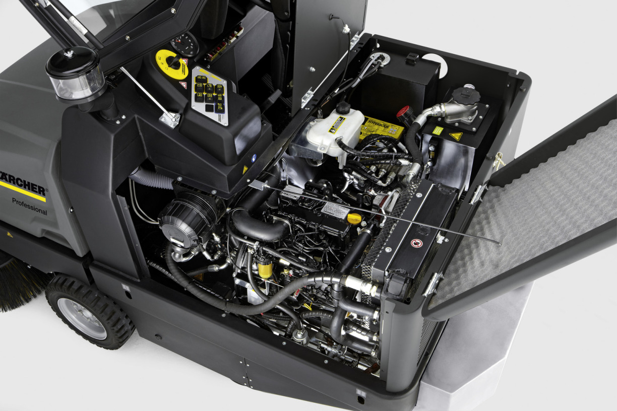 La KM 130/300 R D est une balayeuse aspirante autoportée dotée d’un moteur Diesel performant pour le nettoyage de grandes surfaces extérieures. Elle offre un rendement surfacique allant jusqu’à 13000 m²/h. La maintenance de la machine est limitée. Le vidage du bac à déchets est facilité par le système de relevage hydraulique. Le balai principal est réglable. Le décolmatage du filtre est automatique pour une aspiration optimale. La KM 130/300 R D permet de débarrasser des surfaces industrielles de tous types de déchets (poussières, etc.)