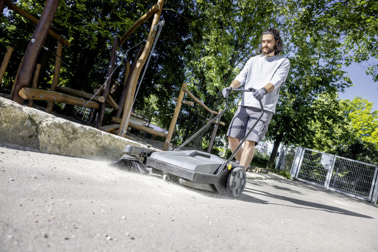 La balayeuse mécanique compacte KM 70/15 C Classic est disponible immédiatement pour un balayage efficace des petites surfaces. Elle est utilisable en intérieur comme en extérieur.