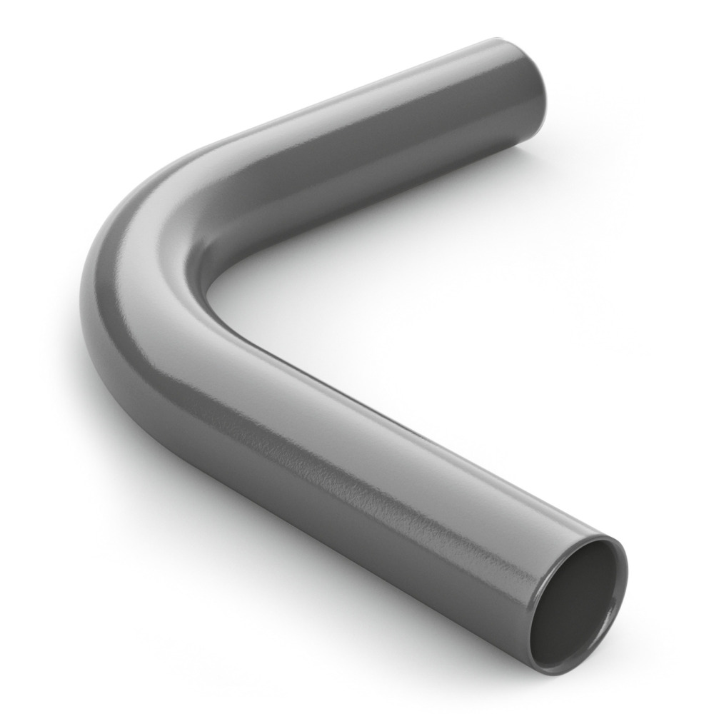 Coude de tuyau en acier trempé enduit avec une épaisseur de paroi de 2,6 mm et une courbure de 90°.