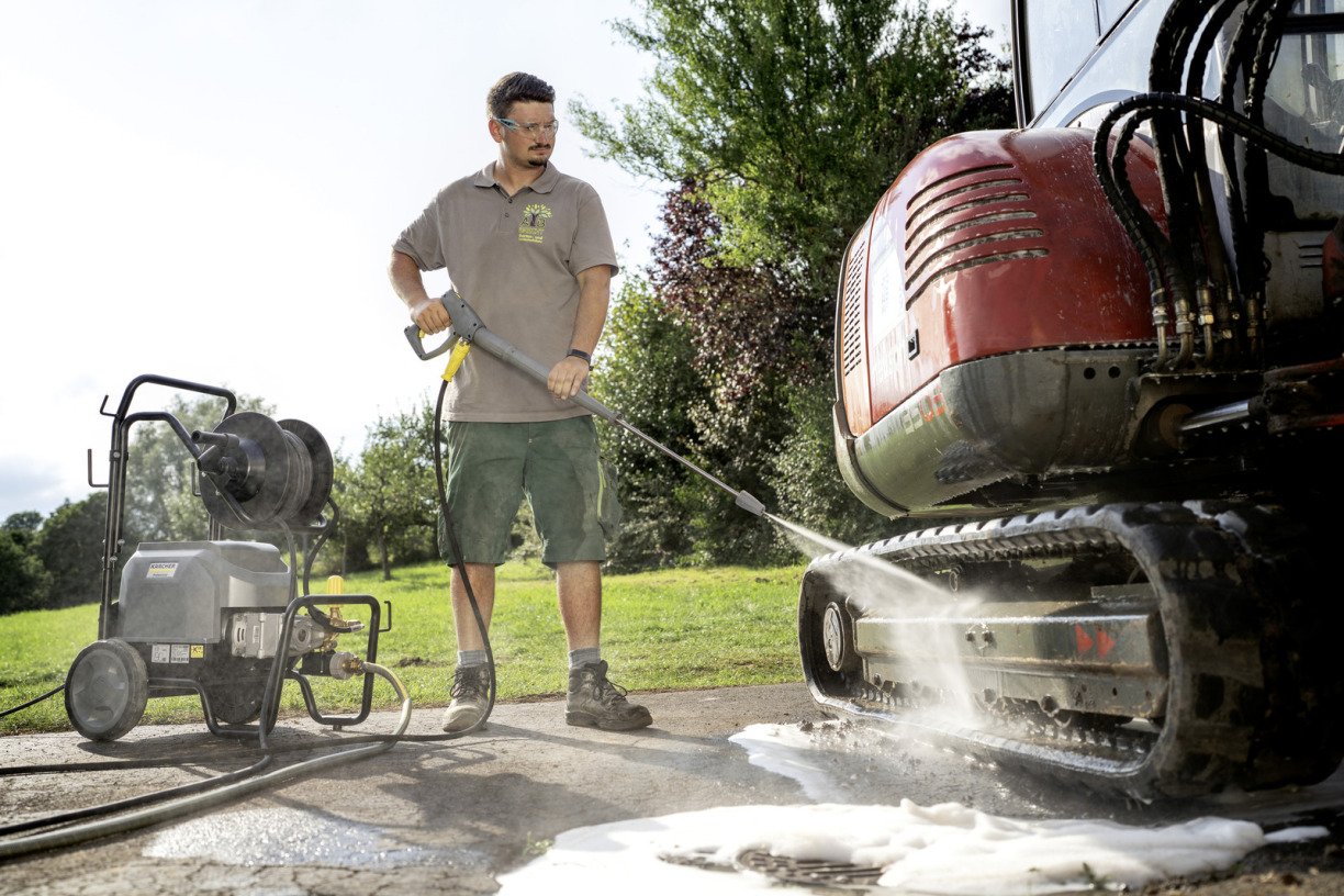 Kit enrouleur de flexible pour l'équipement ultérieur des nettoyeurs haute pression de la gamme Medium Classic. Avec enrouleur de flexible haute pression, flexible haute pression (20 m), flexible de raccordement, supports et petites pièces.