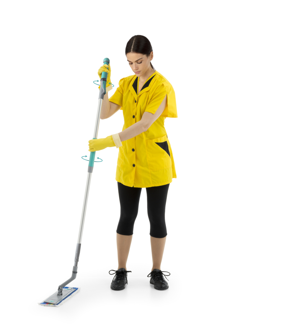 Balai réservoir pour le nettoyage sans seaux, avec support à scratch. Idéal pour les environnements difficiles à atteindre tels que les escaliers et pour le nettoyage d'urgence ou en combinaison avec le nettoyage avec machines.