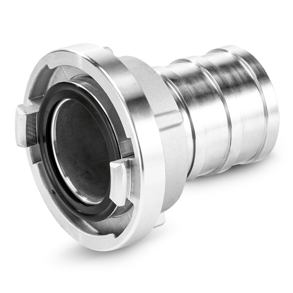 Raccord de tuyau Storz côté tuyau avec embout à olive pour une fixation rapide des tuyaux à la pompe à eau sale WWP 45 de Kärcher. Le raccord est inclus dans l'ensemble d'accessoires Premium.