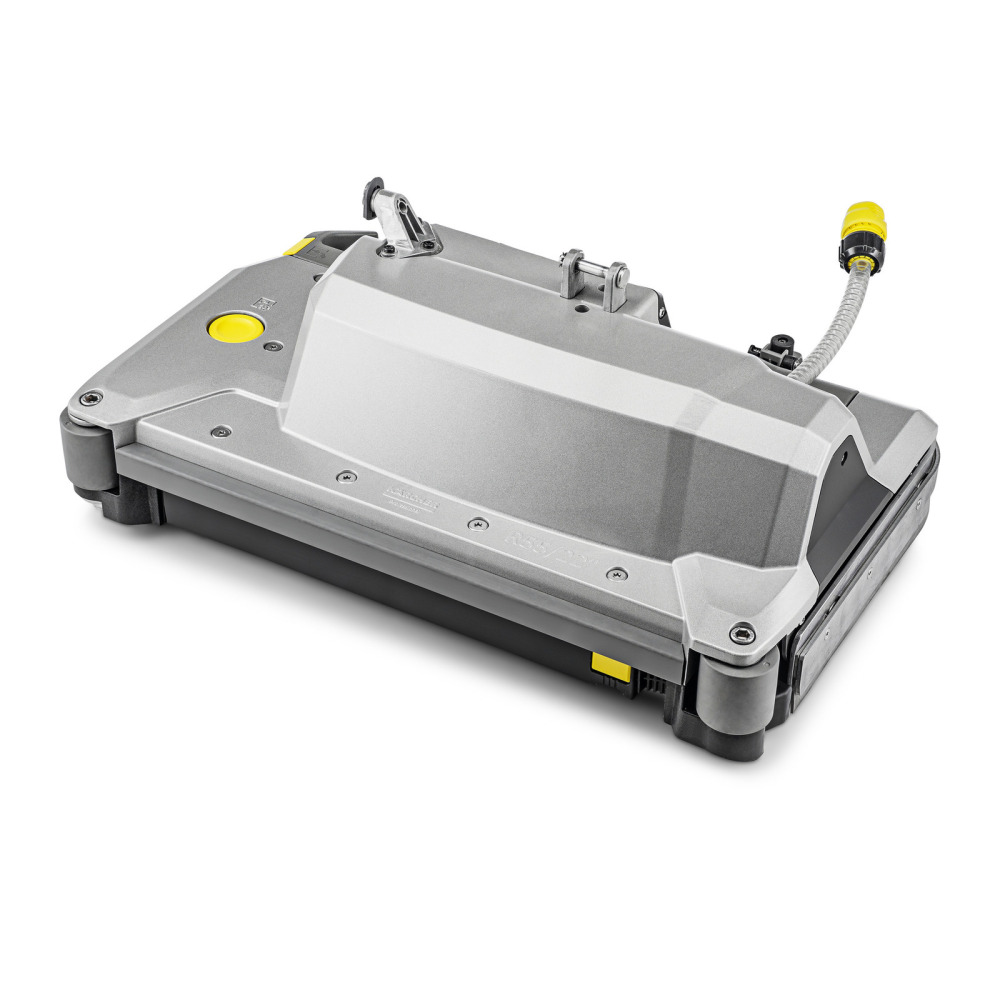 Tête de brossage robuste et compacte R 55 en aluminium avec 2 brosses-rouleaux et une largeur de travail de 55 cm. Fonction de prébalayage intégrée, roulettes de protection, fonctionnement silencieux et composants à code couleurs.