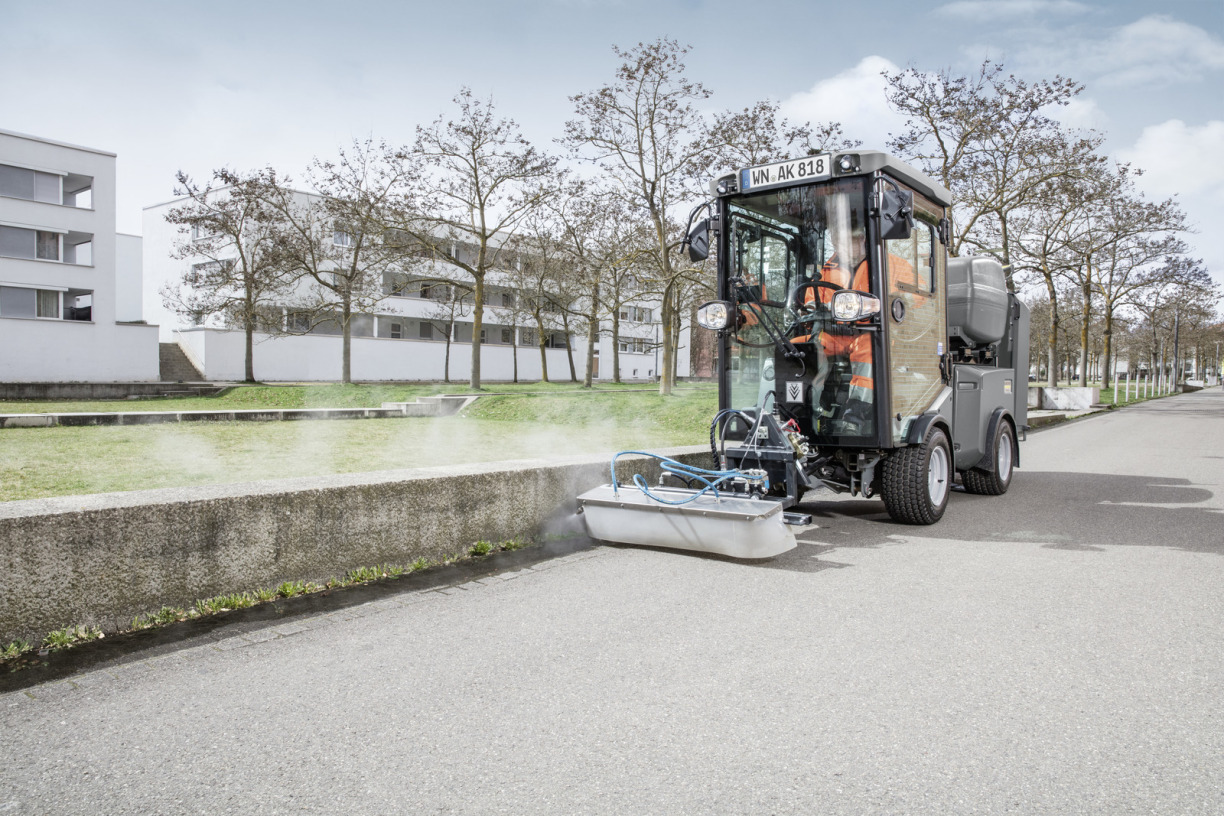 Met een Kärcher werktuigdrager gemonteerd met een mobiele WRS 200 beschikken gemeenten over een milieuvriendelijke oplossing om ongewenst onkruid op een efficiënte en grondig te bestrijden. De zeer compacte vormgeving en onafhankelijkheid van externe stroom- of watervoorziening laten werken toe op afgelegen plaatsen en paden, in parken of binnenstad. Het onkruid wordt gericht bestreden met 98° heet water - machinaal via de gemonteerde voorbalk of met de manuele handlans. Meerdere toepassingen zijn mogelijk, die deel uitmaken van de dagdagelijkse gemeentelijke activiteiten; hogedruk reiniging met warm- of koud water, bewatering van bloemenperken en planten, alsook het efficiënt verwijderen van kauwgom op harde ondergronden.