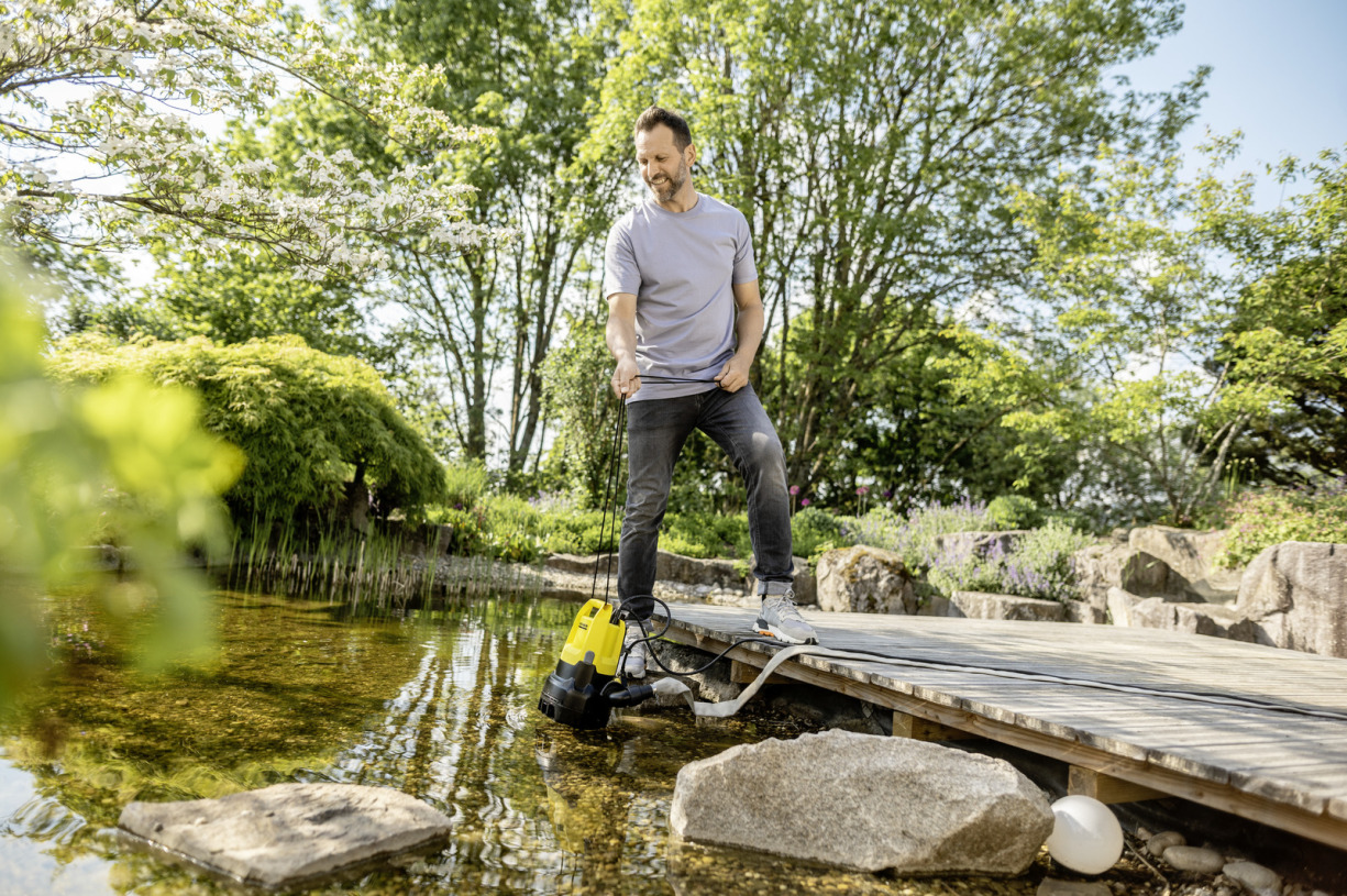 De SP 22.000 Dirt is de krachtigste vuilwaterdompelpomp van Kärcher. Met tot 22.000 l/u is hij perfect voor bijzonder uitdagende afvoertaken zoals in grote tuinvijvers, ondergelopen kelders of bouwputten. De pompen kunnen vuildeeltjes tot 30 mm aan. Als grotere vuildeeltjes een verstopping dreigen te veroorzaken, kan het geïntegreerde roestvrijstalen voorfilter naar beneden worden getrokken om de pompwaaier te beschermen. De glijringafdichting die ook in het Professional-assortiment wordt gebruikt, zorgt voor een extra lange levensduur. Er is zelfs de mogelijkheid om de garantie te verlengen tot vijf jaar, na registratie*. De vlotterschakelaar maakt andere praktische functies mogelijk: hij schakelt de pomp automatisch in en uit afhankelijk van het waterniveau, voorkomt drooglopen en is in hoogte verstelbaar. Hij kan ook zo worden vastgezet, dat de dompelpomp bij continu bedrijf tot 35 mm diepte wegpompt. De Quick Connect aansluitschroefdraad maakt ook een snelle en eenvoudige aansluiting van 1", 1 1/4" en 1 1/2" slangen mogelijk.