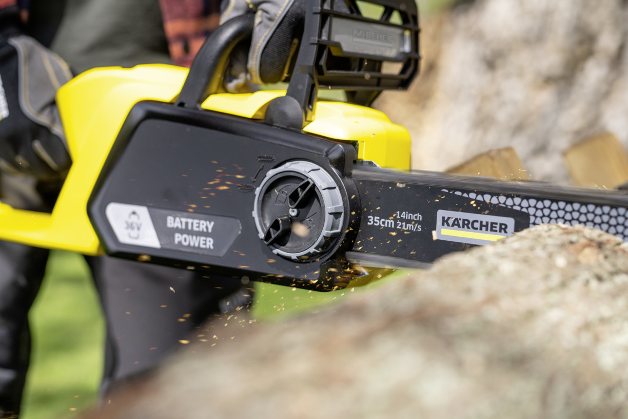 Met hoge kettingsnelheid en lange ketting: de draadloze kettingzaag CNS 36-35 battery is perfect voor veeleisende boomonderhoudstaken. Batterij en lader niet inbegrepen in deze versie.