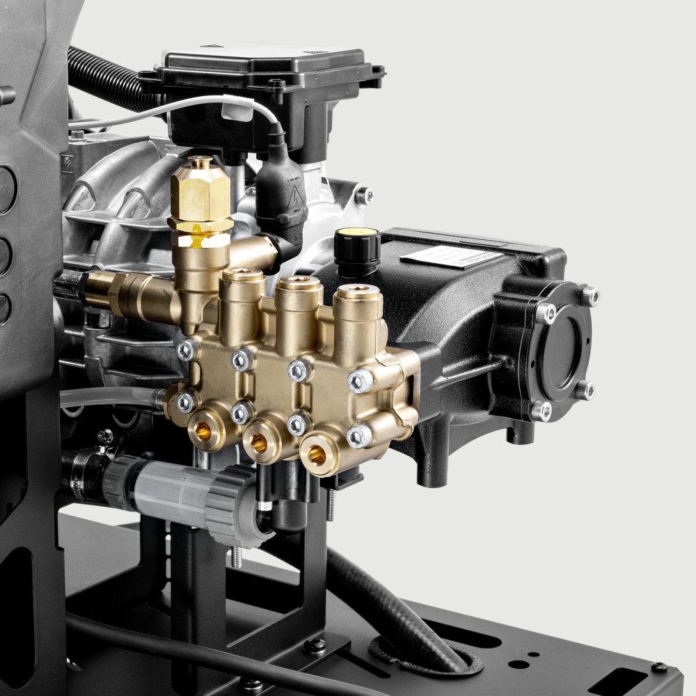 De HDS 10/21-4 St is een stationaire warmwater hogedrukreiniger met oliebrander die extra hoge druk levert: tot 210 bar druk maakt korte metten met zelfs hardnekkig vuil. De 4-polige elektromotor met laag toerental genereert een hoog vermogen voor veeleisend continu gebruik. De robuuste krukaspomp met messing cilinderkop levert tot 1000 liter water per uur. De wateropslagtank heeft geïntegreerde kalkbescherming en een waterfilter om de pomp te beschermen. Het reinigingsmiddel wordt opgenomen en nauwkeurig gedoseerd door een ventiel. Een leeg-indicator geeft aan wanneer het reinigingsmiddel bijna op is. Elektronische bewaking van de oliebrander en de algemene technologie zorgt voor een hoge bedrijfszekerheid. Een intuïtieve draaischakelaar of optionele afstandsbediening maken de bediening eenvoudig, en ook service- en onderhoudstaken zijn gebruiksvriendelijk ontworpen. Met een breed scala aan beschikbare accessoires kan de HDS 10/21-4 St worden aangepast aan een grote verscheidenheid aan reinigingstaken. De machine kan worden aangevuld met een manometer en urenteller, een tweede doseereenheid voor reinigingsmiddel en een drukbeveiligingssysteem.