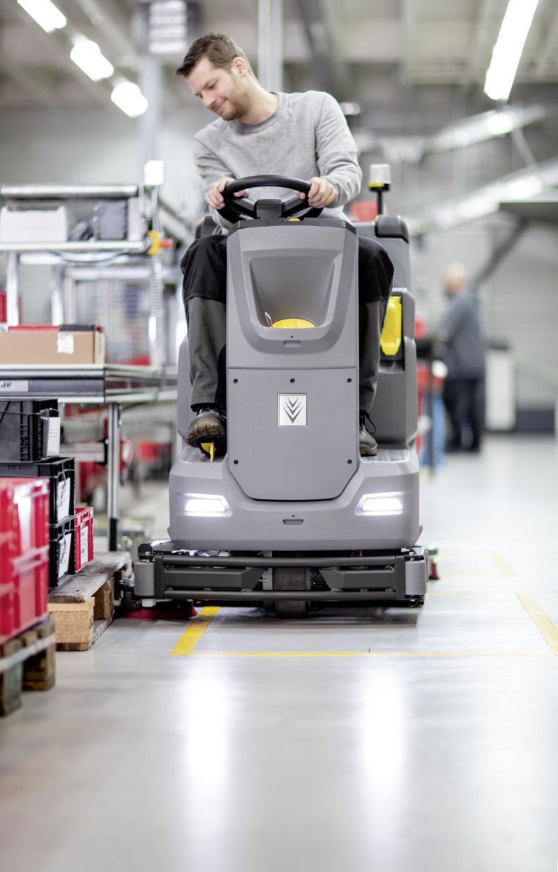 Met een tankinhoud van elk 110 liter voor schoon en vuil water, een rolborstelkop met een werkbreedte van 75 centimeter en een geïntegreerde veegunit, haalt de accu-aangedreven zit-schrobzuigmachine B 110 R oppervlakteprestaties per uur tot 5100 m². Met het standaard zijschrobdek kan de werkbreedte met 10 centimeter worden vergroot en kunnen plekken dichtbij de randen worden gereinigd. Alle instellingen worden handig ingevoerd op het grote kleurendisplay in 30 talen, de kleurgecodeerde bedieningselementen vergemakkelijken het werk voor de gebruiker, de in hoogte verstelbare stoel zorgt voor maximaal comfort, de dagrijverlichting verhoogt de veiligheid en de Auto Fill-functie bespaart waardevolle werktijd. Dankzij het innovatieve KIK-sleutelsysteem, waarmee aan verschillende gebruikers verschillende rechten kunnen worden toegekend voor het instellen van reinigingsmodi en andere functies, worden bedieningsfouten effectief voorkomen. Bovendien bespaart de B 110 R hulpbronnen dankzij het DOSE-reinigingsmiddeldoseersysteem en de snelheidsafhankelijke waterdosering.