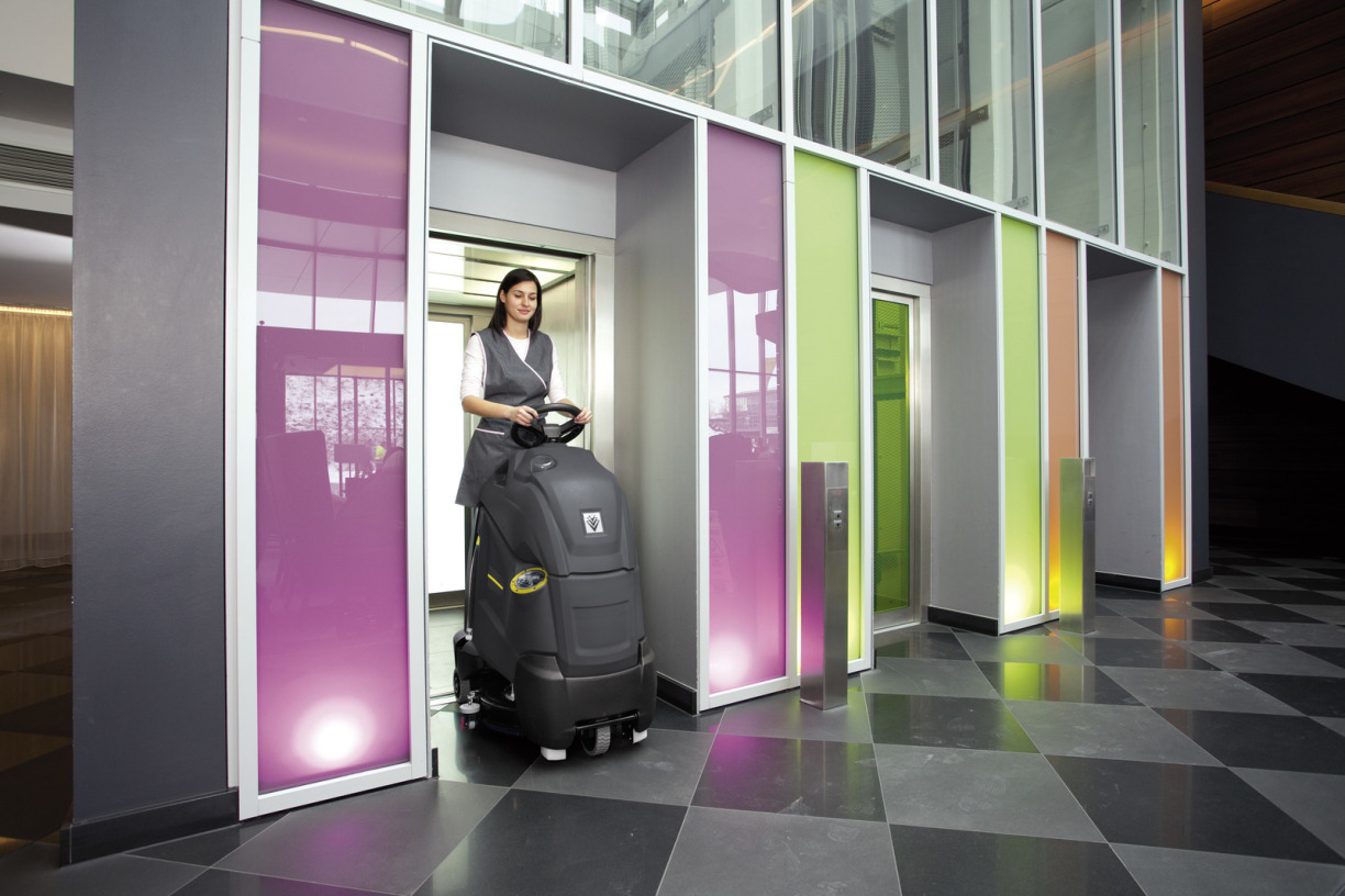 Deze step-on schrob-/zuigmachine combineert de wendbaarheid van een handgeleide machine met de snelheid van een zitmachine. De BD 50/40 RS is de ideale schrob-/zuigmachine voor supermarkten, openbare gebouwen, gezondheidszorg en schoonmaakbedrijven. Met de uitzonderlijke kleine draaicirkel kunnen ook kleinere ruimtes met veel hoeken efficiënt worden gereinigd. Indrukwekkend zijn het compacte ontwerp en de enorme prestaties. Sensationele draaiende zuigbalken. De zuigbalk draait rond het borsteldek zodat zelfs het water in de scherpste bochten 100% wordt opgezogen. Dankzij de instelbare Eco-stand kan energie- en kostenbesparend onderhoud worden uitgevoerd met uitstekende reinigingsresultaten. Zorg voor het milieu wordt gecombineerd met indrukwekkende reinigingsprestaties. De achterklep kan volledig worden verwijderd voor eenvoudige toegang tot het batterijvak en opladen.