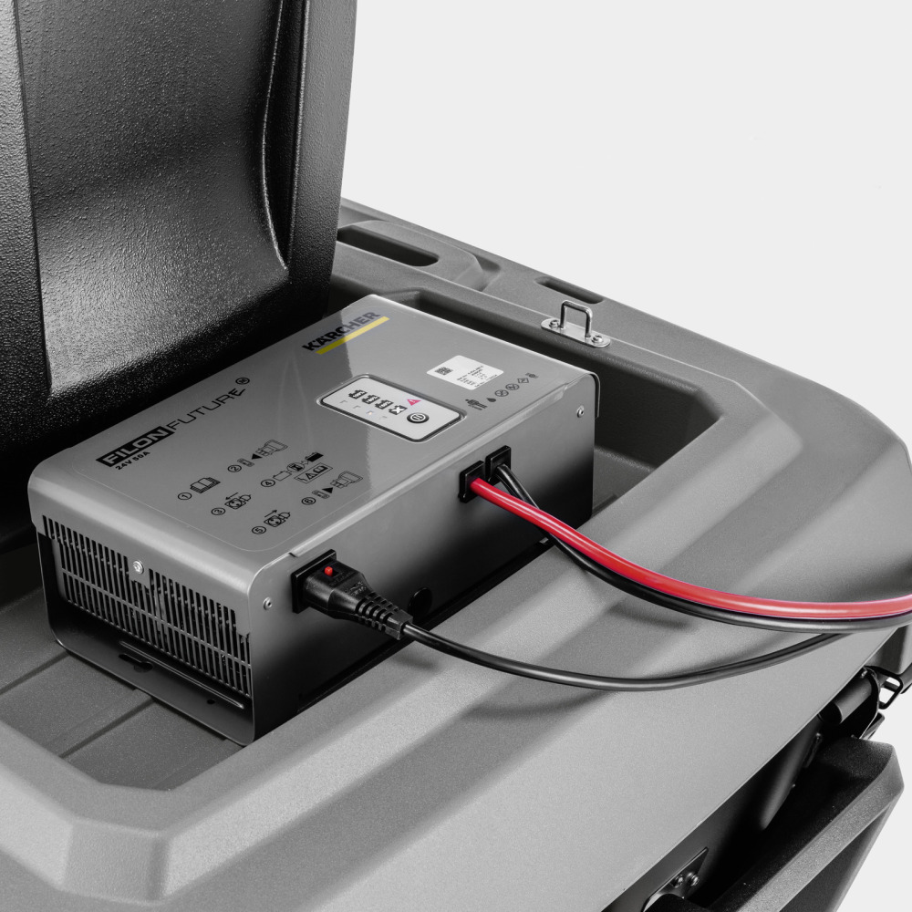 Uitstekend uitgerust, zeer eenvoudig en veilig te bedienen, bijzonder compact constructieontwerp - onze KM 85/50 R ride-on veegmachine weet op alle vlakken indruk te maken. Zo is bijvoorbeeld al een krachtige lithium-ion batterij met een capaciteit van 80 Ah en de bijbehorende snellader aan boord. Ook standaard: de roterende zijborstel met snelheidsregeling, een groot stoffilter voor stofvrij werken en de indicator voor slijtage van de hoofdbezemrol.Dankzij zijn slimme, compacte ontwerp biedt de KM 85/50 R indrukwekkende behendigheid en manoeuvreerbaarheid en is daarom ook geschikt voor reinigingstoepassingen in smalle en beperkte ruimtes. Bovendien biedt de machine een eenvoudig bedieningsconcept met handige details, zoals de oscillerende rol voor zeer goede reinigingsresultaten, zelfs op oneffen vloeren, of het reinigen van het stoffilter vanaf de chauffeurszetel. Onderhoudswerkzaamheden worden aanzienlijk vergemakkelijkt door de breed openende kap, en de hoofdbezemrol kan ook zonder gereedschap worden vervangen. Het geïntegreerde Home Base-systeem maakt het ook mogelijk om extra reinigingsmateriaal mee te nemen.