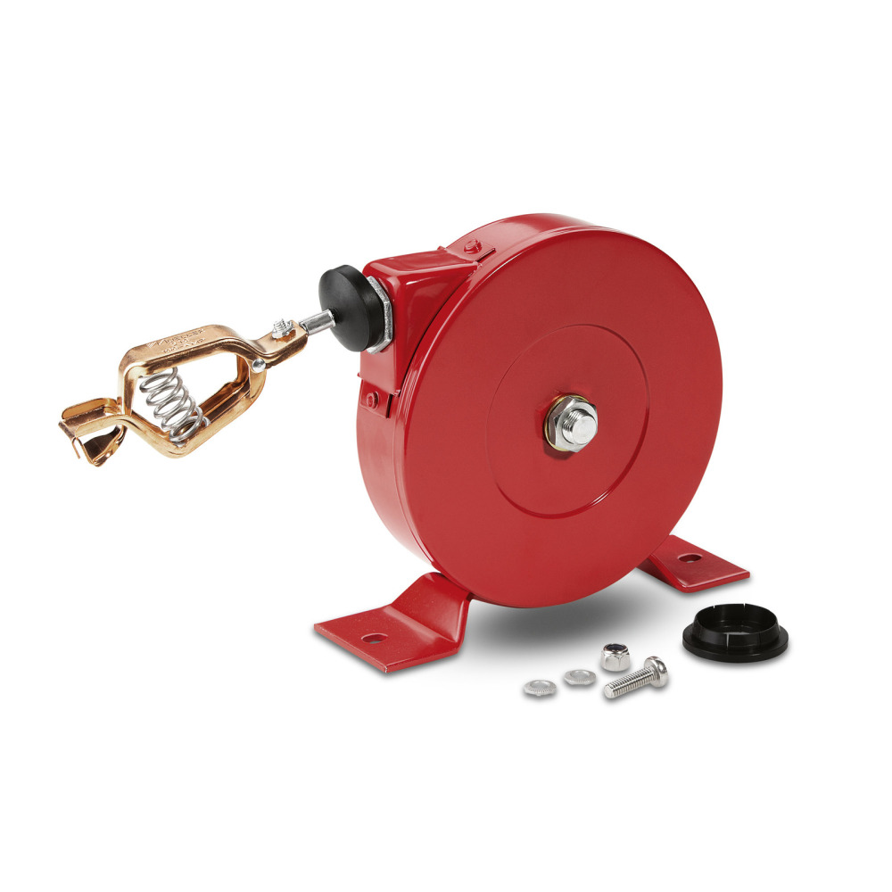 Automatische elektrostatische ontlader met ongeveer 6 m draad en krachtige klem. Deze aarddraad voorkomt effectief het opbouwen van elektrostatische lading van het te reinigen object tijdens het ijsreinigen en het ontstaan van vonken tussen object en spuitmond. Het te reinigen object wordt geaard via de aardleiding van de Ice Blaster.