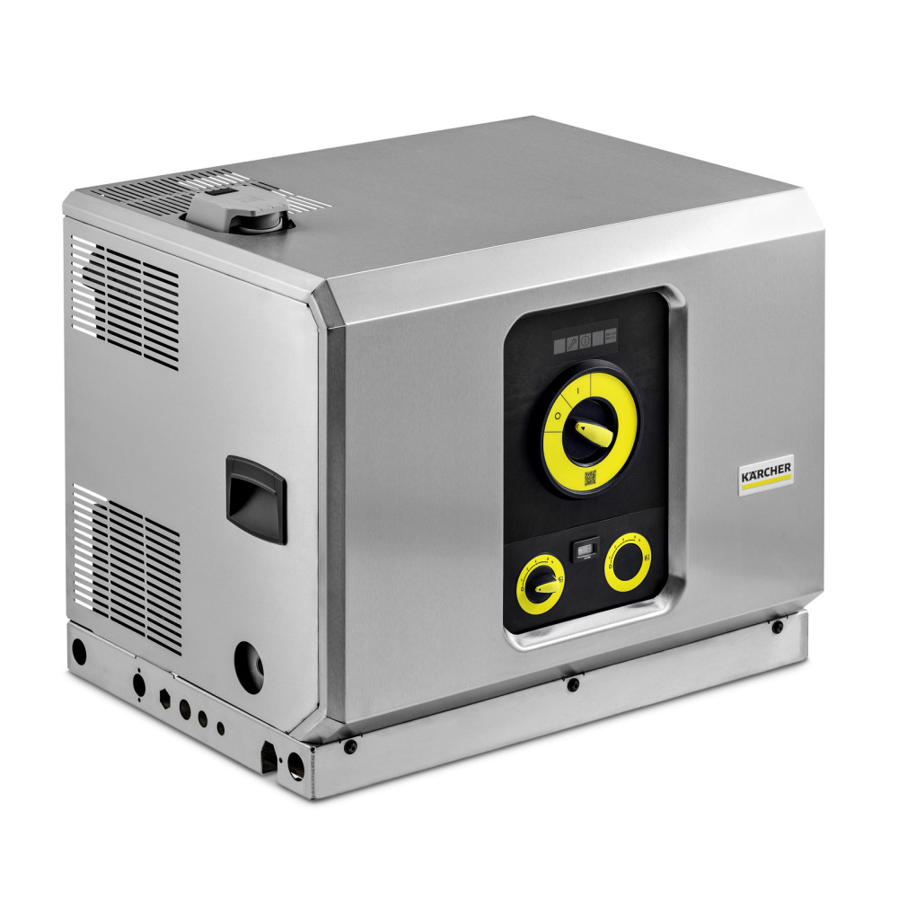 Deze stationaire koudwater hogedrukreiniger overtuigt met zijn probleemloze bediening, een debiet van 1.000 l/u, een druk van 190 bar en een inlaattemperatuur tot 85 °C. De pomp wordt beschermd door een groot waterfilter. Niet alleen de installatie, maar ook de bediening en het onderhoud zijn eenvoudig en gebruiksvriendelijk. De elektronische bewaking en foutindicator garanderen een hoge bedrijfszekerheid. Dankzij de 4-polige elektromotor met laag toerental heeft de machine een lange levensduur, terwijl de krukaspomp met hoogwaardige messing cilinderkop en het roestvrijstalen frame en de behuizing de machine slijtvast maken. De hogedrukreiniger heeft een wateropslagtank met droogloopbeveiliging en kalkbescherming, waarbij het lege niveau van de kalkbescherming wordt weergegeven. Reinigingsmiddel kan ook worden aangezogen en gedoseerd via een ventiel, en ook hier is een leeg-indicator aanwezig. Geleverd zonder accessoires, deze zijn optioneel beschikbaar: manometer, tijdteller, ingang voor tweede reinigingsmiddel, automatische drukverlaging en diverse afstandsbedieningen.