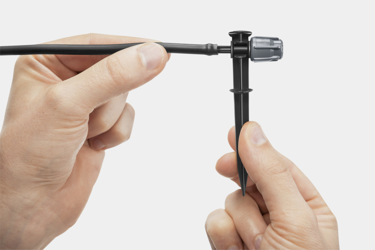 De Kärcher pot-besproeiingskit voor terrassen is een onderdeel van het Kärcher Rain System® en is perfect voor de efficiënte besproeiing tot 15 planten. Potten en bloembakken aan ramen kunnen op een praktische manier worden besproeid met het slangensysteem en de druppelaars. De waterhoeveelheid kan individueel worden ingesteld op elke druppelaar, waardoor een besproeiing naar wens van elke plant apart mogelijk wordt zonder water te verspillen. Voor de aanvoer van het water wordt een flexibele slang van 10 m gebruikt van 1/2" (incl. G3/4 messing kraanaansluitstuk met G1/2 reduceerstuk en slangaansluitstuk voor aansluiting aan de kraan). De dunne slang (10 m inbegrepen) wordt aangesloten door middel van opzetstukken (10 stuks inbegrepen), die dankzij de geïntegreerde naald aan de Kärcher Rain System® slang kunnen worden aangesloten zonder gereedschap. De besproeiing in de potten gebeurt via druppelaars (15 stuks inbegrepen), die kunnen worden vastgezet met behulp van grondpennen (15 stuks inbegrepen). Afsluitstukken (3 kleine en 1 grote) voor het afsluiten en T-stukken (10 stuks inbegrepen) voor de aansluiting van de slangen zijn ook inbegrepen. Het systeem kan naar wens worden uitgebreid met de producten uit het Kärcher Rain System® of de SensoTimer eco!ogic voor een efficiënte bewateringscontrole.