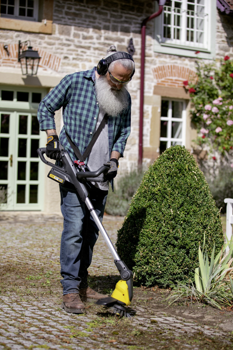 Met de ergonomische schouderriem kun je langere tijd met Kärcher's accu-aangedreven tuingereedschap werken zonder de fysieke belasting te voelen. Het is comfortabel om te dragen en ontlast de gebruiker. Te gebruiken met onder andere de WRE onkruidverwijderaar, evenals ander accu-aangedreven tuingereedschap.