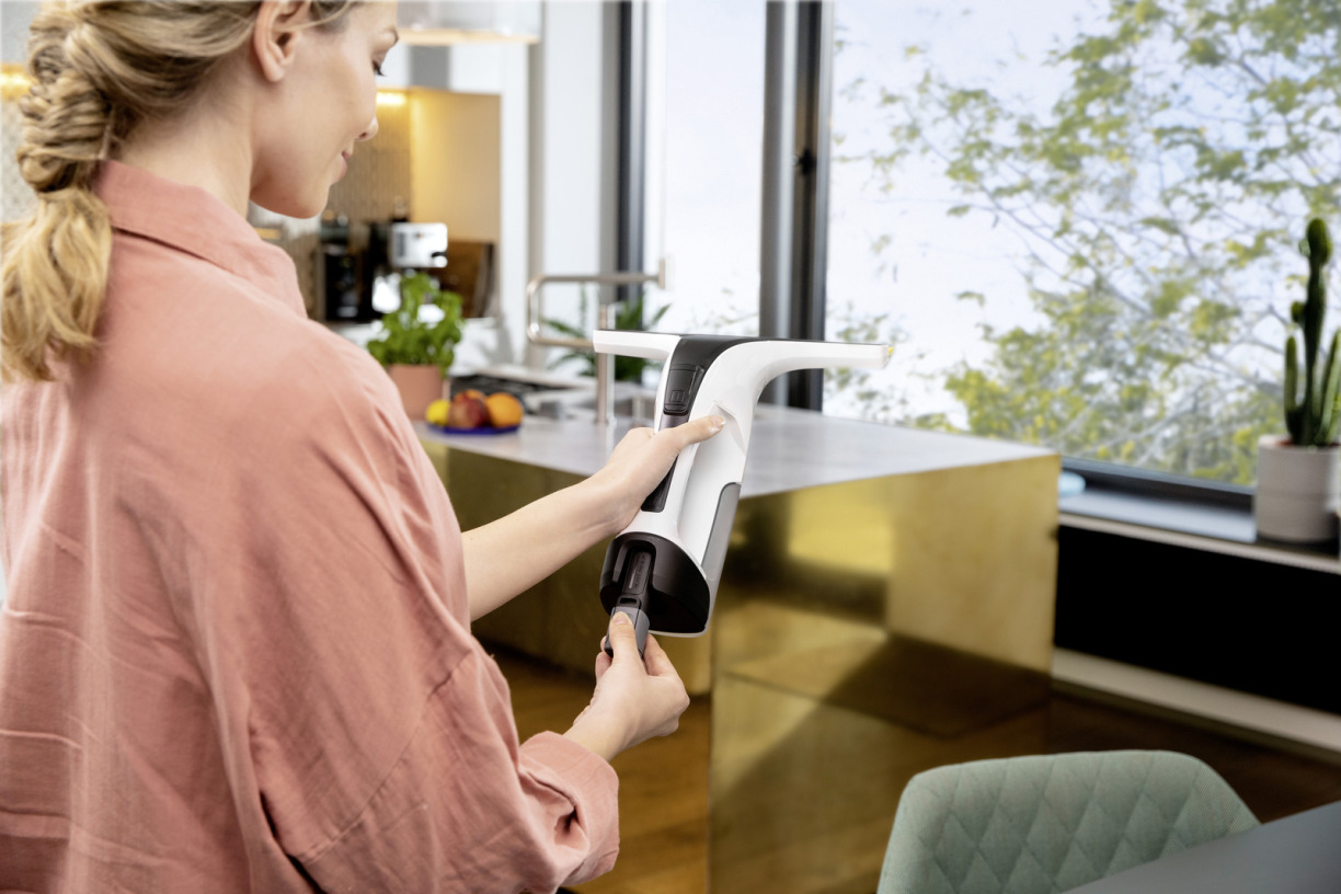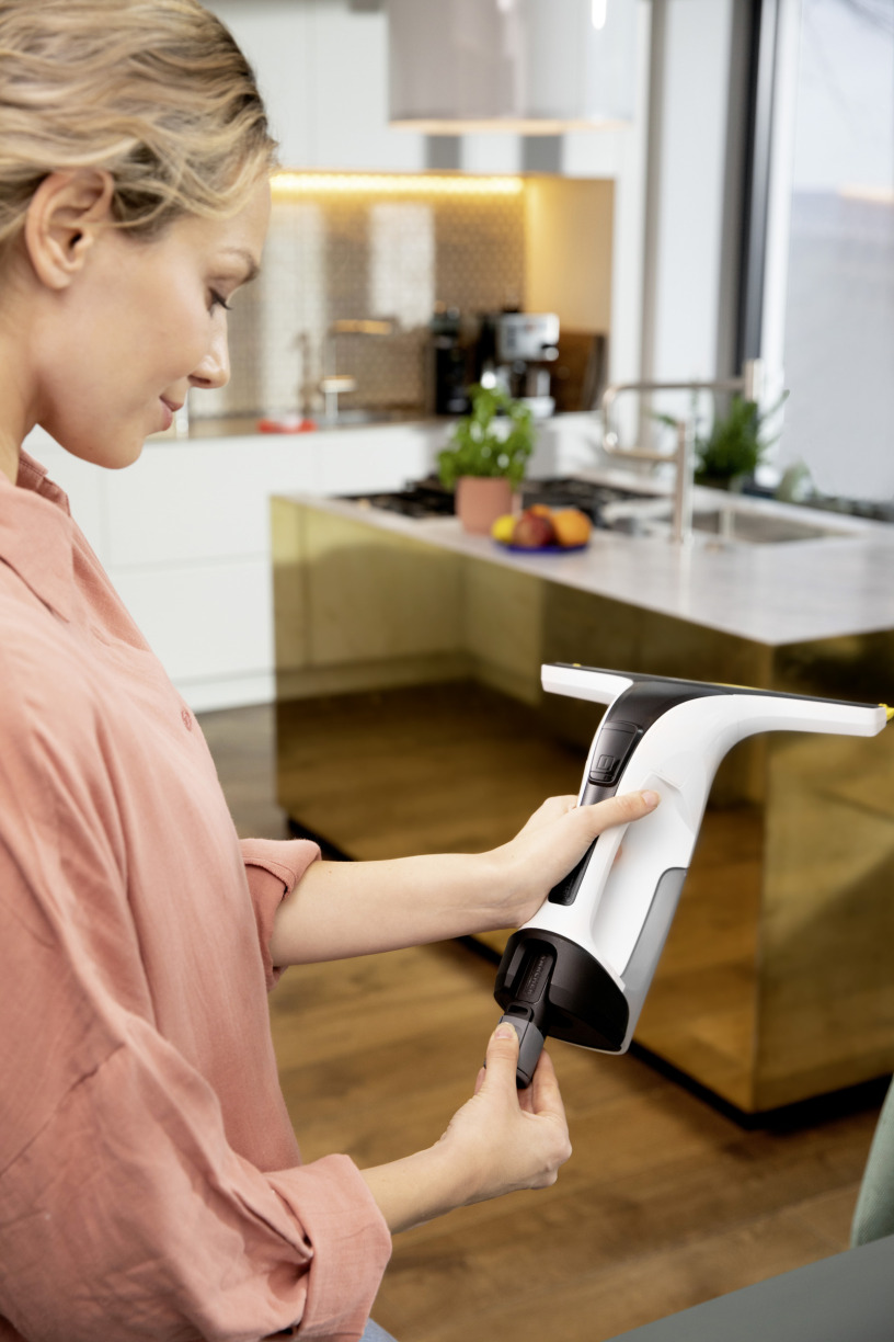 Prestaties die indruk maken: de ruitenreiniger WV 4-4 Plus beschikt over een 4V verwisselbare batterij voor een eindeloze werktijd zonder onderbrekingen, een LED-batterijstatusindicator en een innovatieve siliconen zuiglip die het reinigen van ramen tot aan de vloerrand mogelijk maakt. De slimme combinatie van sproeiflacon en microvezeldoek en de zuigfunctie van de WV 4-4 Plus staan garant voor sprankelende ruiten - zonder strepen en druppels. Ook alle andere gladde oppervlakken kunnen eenvoudig worden gereinigd. Ramen reinigen met de ergonomische Kärcher WV 4-4 Plus is ook bijzonder hygiënisch: bij het legen en reinigen van de vuilwatertank komt de gebruiker niet in direct contact met het vuile water. De 4 V Kärcher Battery Power verwisselbare batterij en oplader zijn bij deze versie niet inbegrepen maar kunnen als accessoire worden aangekocht. Deze 4V batterij is compatibel met alle andere apparaten in het 4 V Kärcher Battery Power-platform.